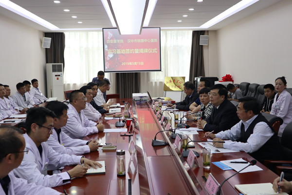 党委书记范兵简要介绍我校办学历史与实力,我校连续三年临床执业医师资格考试通过率超过全国平均水平,基于陕西社会经济发展和基层卫生单位迫切需求,我校不断优化专业结构,适时调整招生规模,积极探索基层卫生人才“下得去、用得上、留得住、有发展”的有效途径。他表示,实习基地的揭牌将开启双方合作的新篇章,希望我校汉中籍的学生毕业后能够服务家乡,奔赴基层,他指出,加强医学生的思想政治教育,也是医院党组织的重要任务。新时代,新征程,相信铁路中心医院在院领导班子的带领下,在市卫健委的大力支持下为健康中国建设作出新的更大的贡献!(党委宣传部 文/图 唐臻娜)