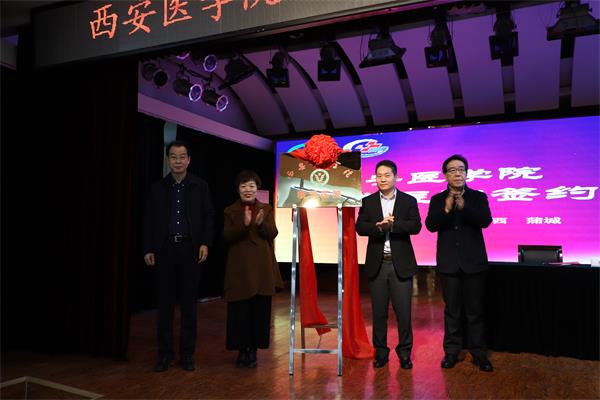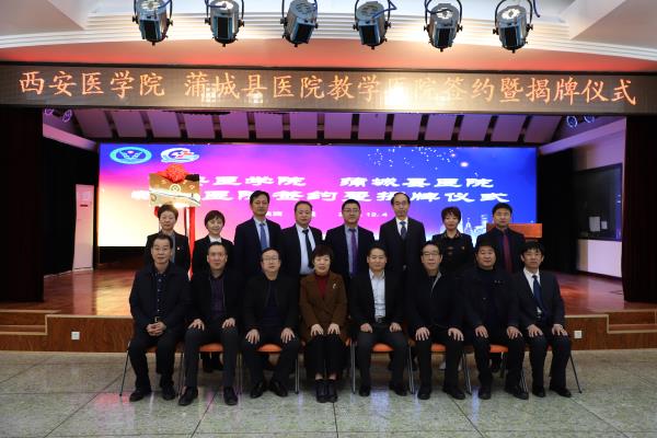 中共蒲城县委副书记王恒为仪式致辞过后,由实践教学处处长李俊杰和县医院院长薛小飞在协议书上签字,陕西省卫健委党组成员、副主任杨联昌,西安医学院副院长李雪萍、全科医学院院长任天顺、渭南市卫健委副主任李晓平共同为教学医院揭牌。出席本次仪式的还有医政医管科副科长于博、蒲城县医院全体领导班子成员和中层干部。