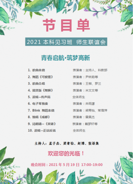 为丰富我校学生的课余生活,5月19日下午医院科教部利用课后时间举办了“青春启航·筑梦高新--西安医学院2017级精卫本科见习班师生联谊会”。吕良山常务副院长、李维玲副院长、舒博学副院长、以及各教研室教师代表、科教部老师、和来自兄弟单位商洛市中心医院科教科的老师、西安医学院精卫1712班辅导员张嘉旭老师与所有同学共同联谊。常务副院长吕良山勉励同学们,不负父母期待、不负社会重托,努力成长为一个守护人民健康的有志青年。