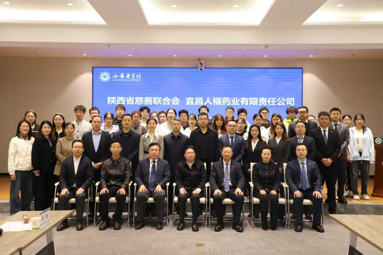 捐赠仪式上,巩守平代表学校对陕西省慈善联合会和宜昌人福药业有限责任公司对学校的支持表示感谢,介绍了学校的办学历程、育人成果以及“十五五”期间基于学科专业发展的师资队伍、人才培养、科学研究、社会服务等立德树人方面的重点工作。他强调,学校正处在深化改革、提升内涵、加快建设高水平医学院校的关键时期,需要社会资源支持相关学科专业建设。希望能够进一步深化与陕西省慈善联合会的交流互动,拓展与宜昌人福药业有限责任公司在多领域的务实合作,共同探索产学研协同创新的新路径,为“健康中国”、“健康陕西”建设贡献智慧和力量。